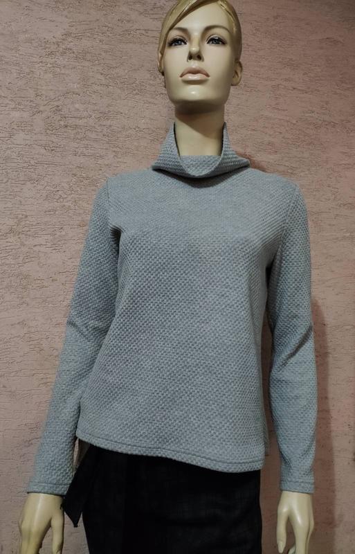 Крутой, трендовый свитшот с горловиной в отличном состоянии серого цвета. Длина изделия по спинке от плеча 63 см, Длина изделия спереди от плеча 58 см, полуобхват груди 49 см, длина рукава 58 см, высота ворота 12 см. Ткань 85% полиэстер 15% вискоза, тянется. Модель 5