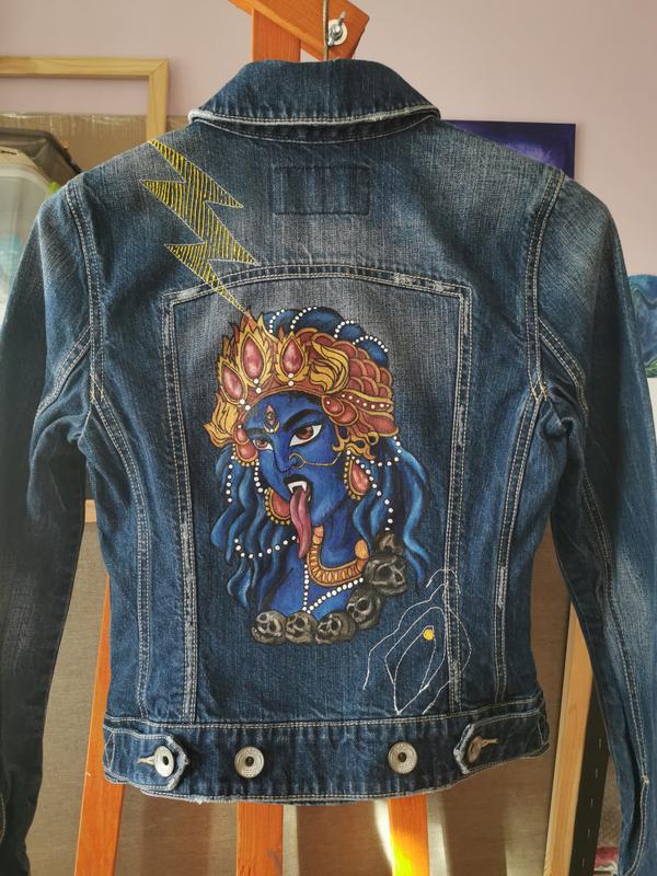 Джинсовая куртка с кастомной росписью (ручная работа) с богиней кали