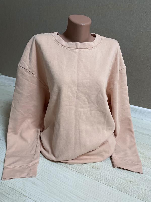 Свитшот кажется немного застиранным. Для дома подойдет. Пятен и дыр нет. Длина 68см Пог 62см Рукав от горловины 76см