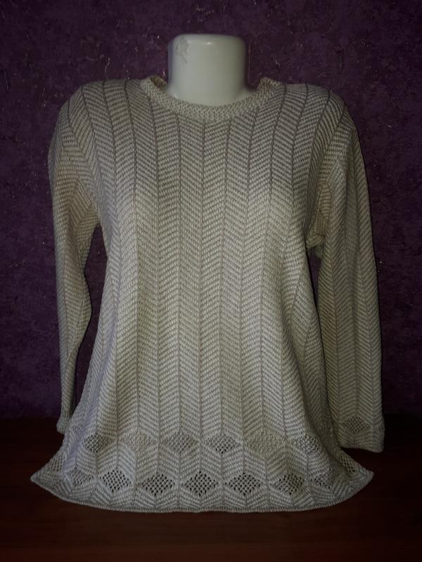 В идеальном состоянии, НАТУРАЛЬНЫЙ, красивый, льняной свитшот. Очень красивый, купонный узор по вороту, низу и рукавам. Удлиненный фасон, с разрезиками по бокам - отлично подойдет под джинсы, капри, легинсы, бриджи. Легкий, дышащий и теплый, - весенний вариант. Пойдет на р-р 46-50. Замеры - по запросу. УП, НП, УПАКОВКА +15 грн