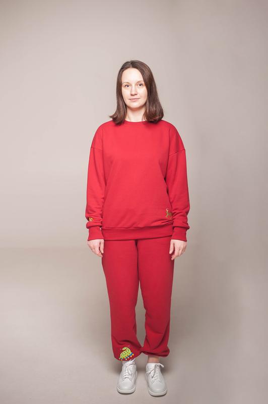 Демісезонний теплий жіночий червоний світшот з оригінальною вишивкою