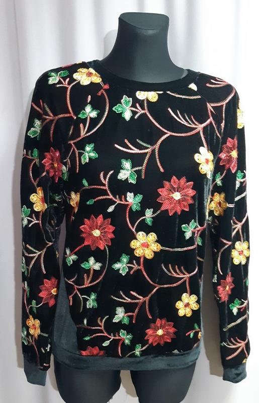 Свитшот Мирелла Satin. Цвет черный, цветы. Велюровый. Размер 46. ПОГ-50, Рукав от шеи-74, Длина-63. Новый.