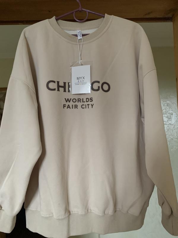 Свитшот новый, Оверсайз, очень хорошее качество, цвет молока, с надписью чекаго. Замеры полуобъем груди 67см, длина 68см. То