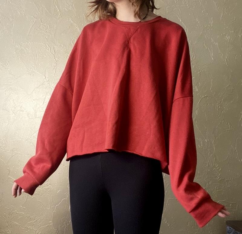 Світшот. Кофта. Розмір не вказаний але на фото є заміри 50 см - довжина (від плеча) 74 см - довжина рукава (від комірця) Може носитись як оверсайз Досить тепла, чудово підійде на весну або ранню осінь