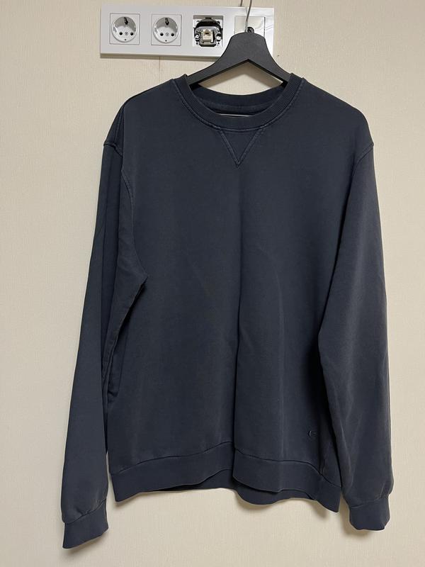 Хлопковый свитшот дорогого бренда, немного вываренный по швам, но в меру, очень красивый серо синий цвет, подойдет как на мужчину так и на женскую s m