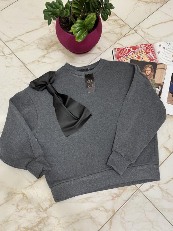 Женский свитшот на флисе в размере L. Стан - новый (с биркой). Материал: тринит на флисе. Бант из эко кожи, можно снять.