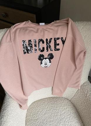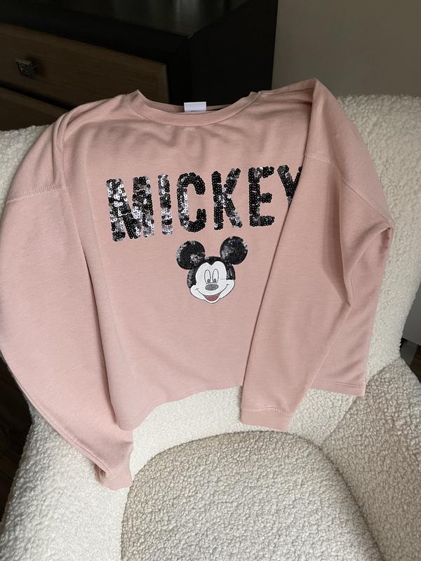 Укороченный свитшот C&A Disney. Размер Xs-S. Микки из пайеток. Состояние хорошее, немного катышков. Длина 51 Рукав от горла 75 Плечи 55 Под руками 55 Ширина по низу 51 Состав 63 полиэстер 37 вискоза