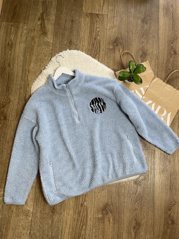 В наличии свитшот, гариный стан, цвет в жизни будет нежно голубой на фото плохо передает, размер С -М Рукав полностью 73, пог 65, длина 62