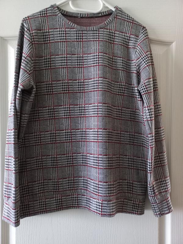 Свитшот, джемпер,размер L/14, ткань плотная,эластичная, немного тянется. Состав : коттон, полиэстр, вискоза, Замеры : ПОГ 54, внизу 52, длина 64, плечи 38-39, длина рукава 60