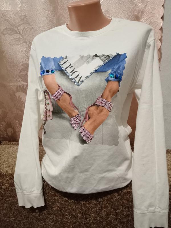свитшот в красивом состоянии, мягкий и приятный к телу, рисунок все хорошо, на манжетах рукава и низ