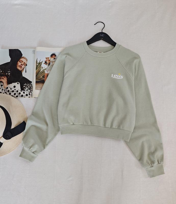 🌿зеленый свитшот Levi$ свободного кроя с манжетами, ткань 60% коттон, 40% полиэстр Размер:S Замеры:ПОГ 59 см, длина 51 см, рукав от горловины 72 см