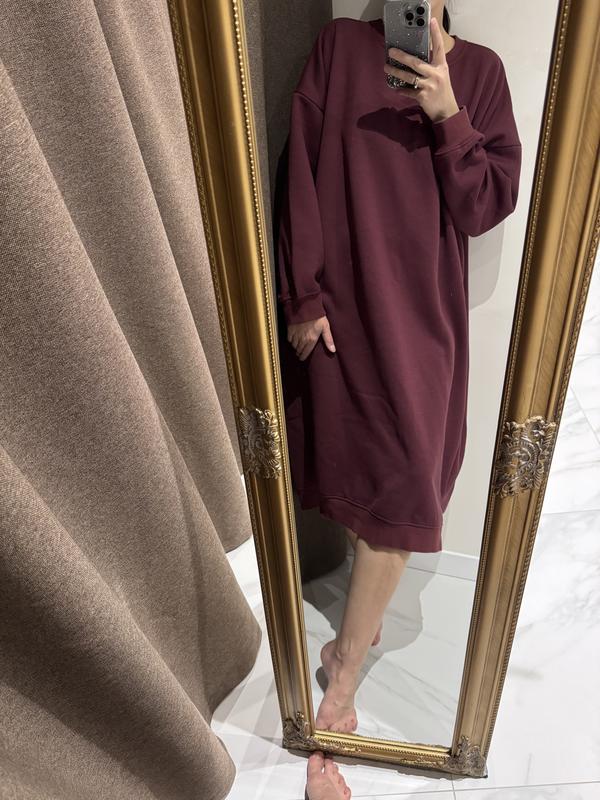 Платье удлиненное свитшот, размер 16 - около L. На фото одет на S-M. Длина 110 см ПОГ 73 см Рукав 47 см