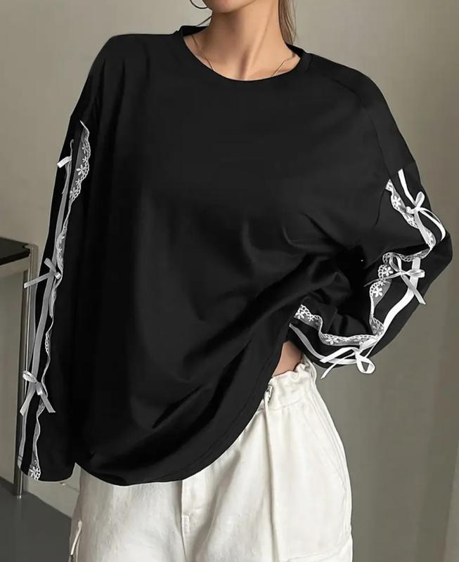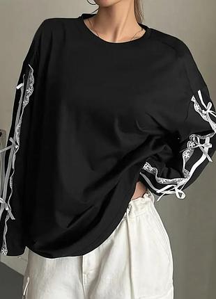 свитшот женский с лентами и бантиками на рукавах с обеих сторон, легкий на осень, по размеру хл