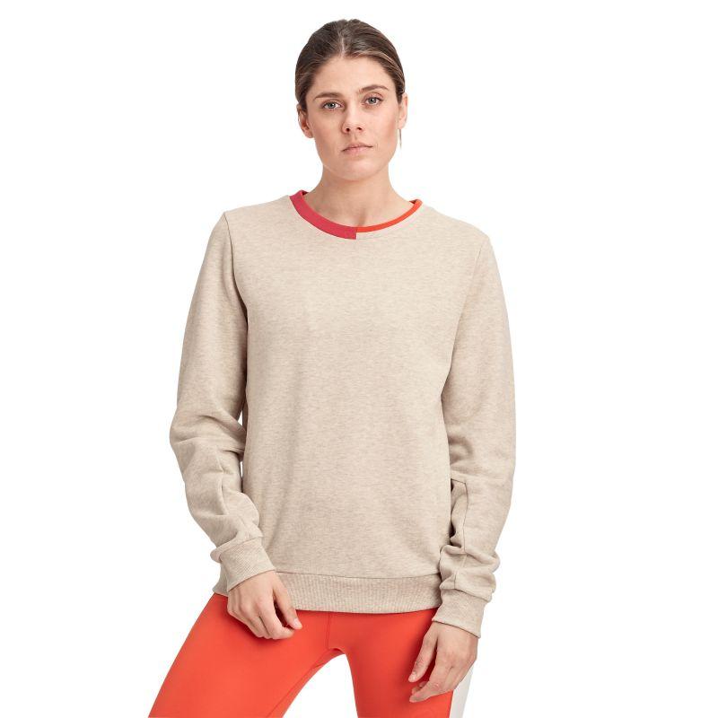 Женский свитшот Mammut цвет Moonbeam Melange Свитер-пуловер с круглым вырезом, имеет широкий ребристый подол и манжеты, идеально подходит для весеннего и летнего сезонов. Изготовлено из мягкого, комфортного органического хлопкового материала. Декольте в цветных блоках и четкий дизайн выреза добавят вашему наряду модного штриха. Также бросается в глаза культовый логотип бренда на груди. Это изделие идеально подходит для универсального использования, от ежедневного повседневного стиля до скалолазания и других видов спорта. размер S / 160 / 88А пог 49,5 см пот 45,5 см длина 64,5 см плечи 38,5 см рукав 60 см состояние идеальное / имеет зацепки с середины рукава ОРГАНИЧНАЯ БАВОВНАЯ: сертифицированная GOTS, мягкая и приятная на ощупь