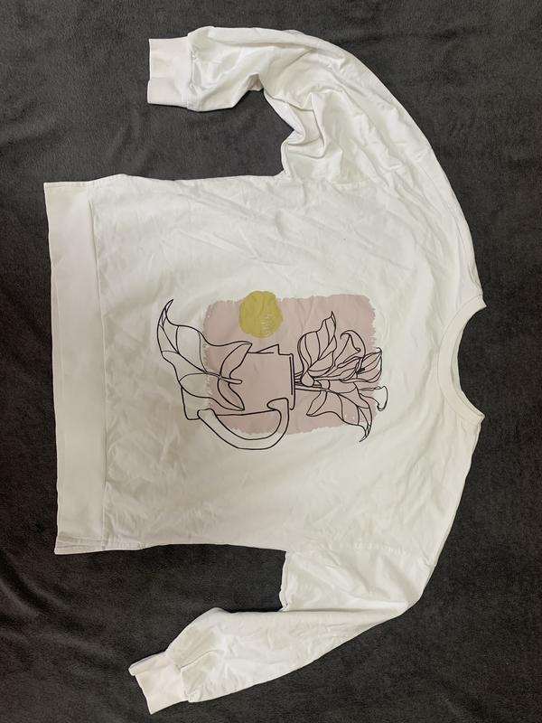 Жіноча кофта Colin’s, розмір М Продам стильну білу кофту від бренду Colin’s з ніжним мінімалістичним принтом у вигляді вази з квітами. Кофта м’яка, приємна до тіла, підійде для повсякденного носіння чи легких прогулянок. Стан: дуже хороший, одягалась лише декілька разів після покупки. Розміри: • Довжина рукава: • від плеча — 45 см • від горловини — 68 см • під рукою — 38 см • Ширина (під рукавами) — 51 см • Довжина виробу — 57 см Кофта не має плям, зберігалась охайно. Пишіть/ телефонуйте— відповім на всі запитання!