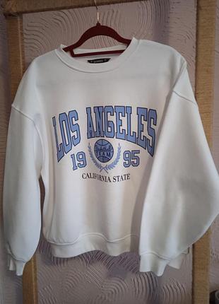 Свитшот белого цвета. Длина 64 см ширина 64 см полуобхват рукав от шеи 73 см