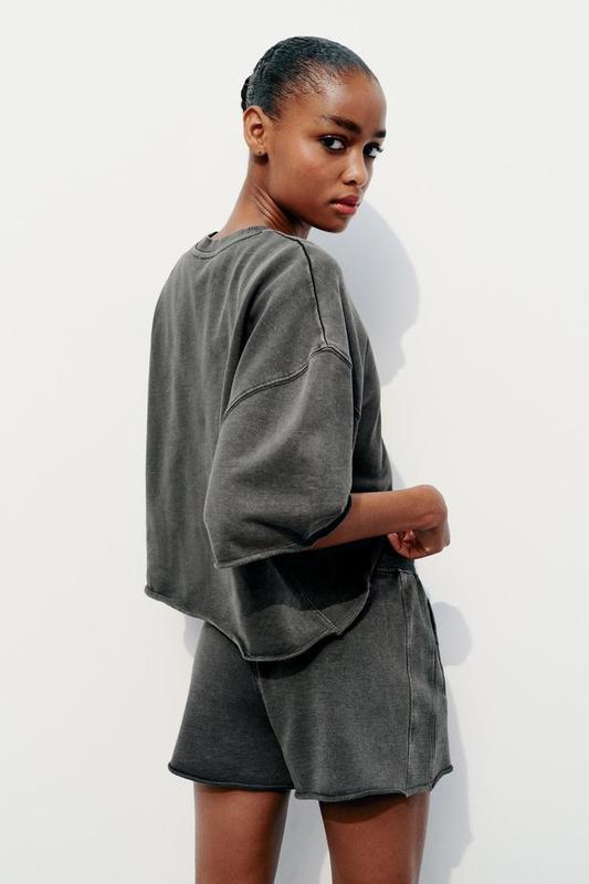 СВЕТООТ В РУБЧИК С КОРОТКИМИ РУКАВАМИ В наличии размер S, M, новые, с бирками, оригинал 💫 Вареный свитшот круглым воротником, опущенными проймами и короткими рукавами. Вставки в рубчик на туловище. Благодаря процессу окрашивания и создания вареного эффекта каждый товар имеет особый уникальный цвет, так что может несколько отличаться от изображенного на фотографии. Темно-серый