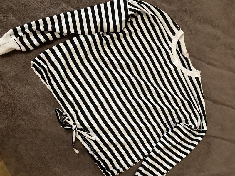 Жіночий неймовірний світшот в полоску. Розмір S, довжина 51 см, рукав 45 см (без плеча). Знизу регулюється за допомогою резиночки на завʼязці.
