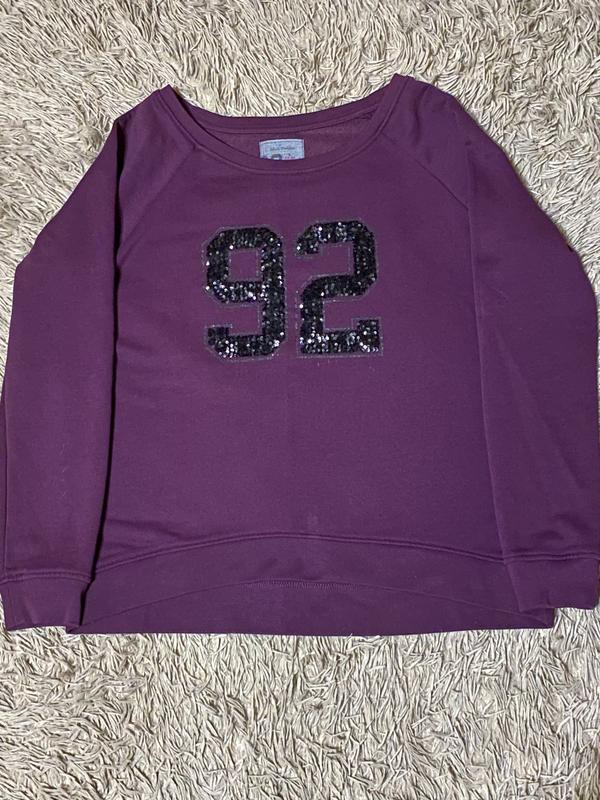 Світшот оверсайз .ПОг 58 см,довжина по спинці 62 см,спереду трошки коротший, довжина рукава 71 см від горловини Насичений фіолетовий колір,тканина -бавовна і поліестер