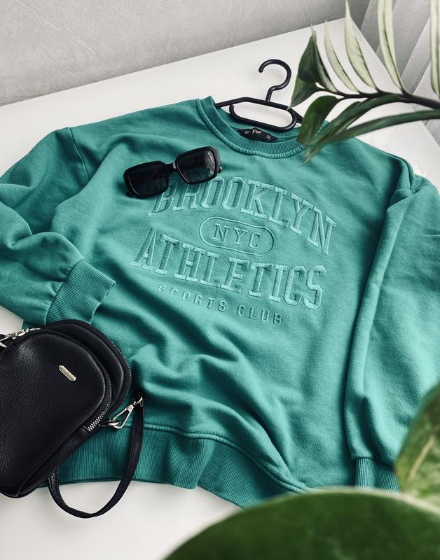 Яскравий світшот з написом від f@f На розмір М , невеличка L Довжина 59, пОГ 56, рукав вкорочений 44