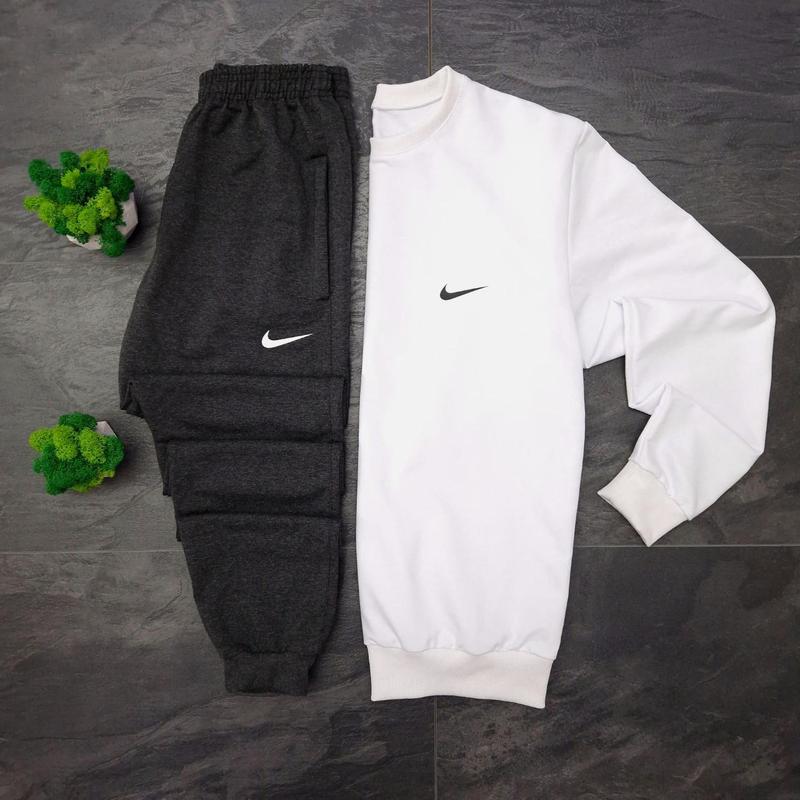 Свитшот + Брюки NIKE Classic Свитшот - ткань: двухнитка Турция - материал: хлопок/эластан 80/20 - качественный пошив - низ и рукава на мажете - логотип: термотрансферна накатка Штани - ткань: двухнитка Турция - материал: хлопок/эластан 80/20 - качественный пошив - низ брюк на мажете - логотип: термотрансферна накатка Размерный ряд: S M L XL XXL замеры