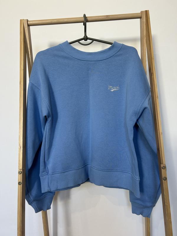 Світшот на байці по бірці ХС /С нюанс останнє фото дві плями треба попрати а так стан як нового Довжина-58см Пів обхват грудей-49 см тягнеться Рукав від горлишка- 74см