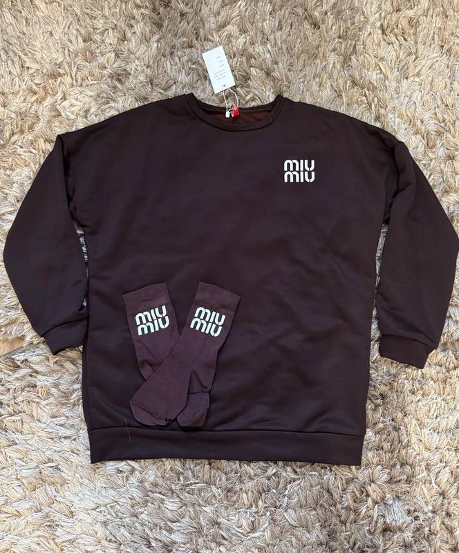 Кофтинка під бренд + носочки 🤎 Розмір один Довжина кофти 69 см Груди 61 см Рукав від шиї 79 см Носочки висота від пятки 20 см Кофта тринитка