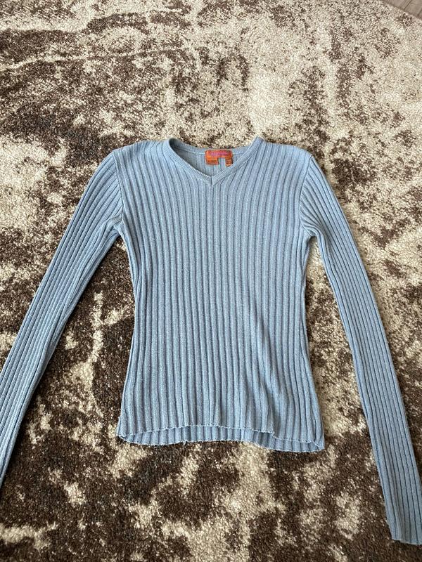 голуба кофта у рубчик на бірці пише “EUR M,USA M,MEX 28” але підходить на S,XXS,XS