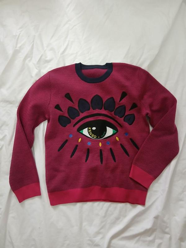 Свитер с большой вышивкой в виде глаза. Есть незначительное катышки подмышками, состояние хорошее.