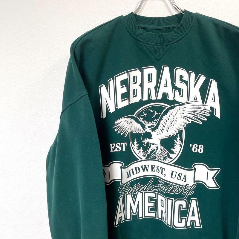Світшот унісекс темно-зелений, з принтом “NEBRASKA, USA”. Зручний, теплий, вільного крою. Ідеальний для повсякденного стилю.