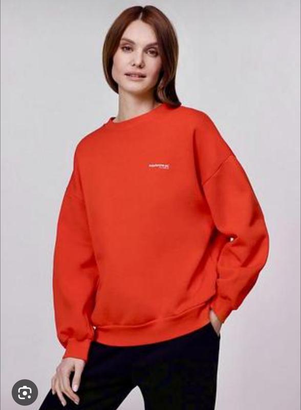 Стильный оранжевый свитшот, украшенный мягкой ворсой. Длина 62 пог 63 ширина внизу 45 рукав от горловины 76 по дополнительной информации обратитесь.