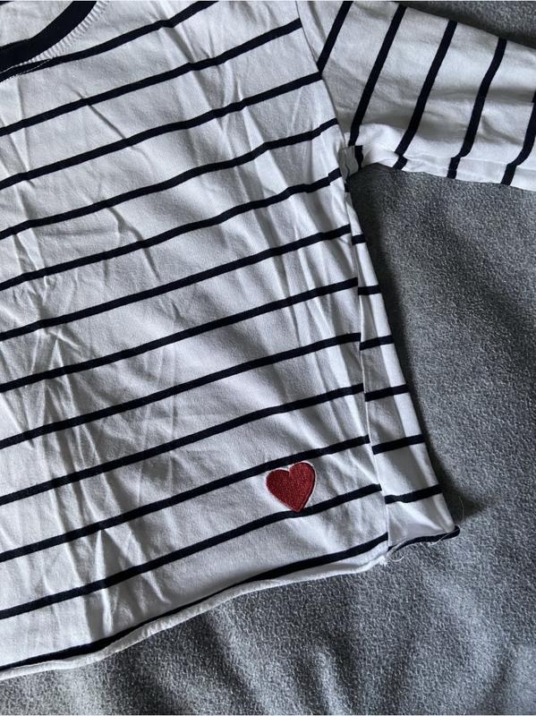 Кофтинка в смужку з серцем від Goldi, виготовлена з бавовни, довгий рукав, білого кольору.