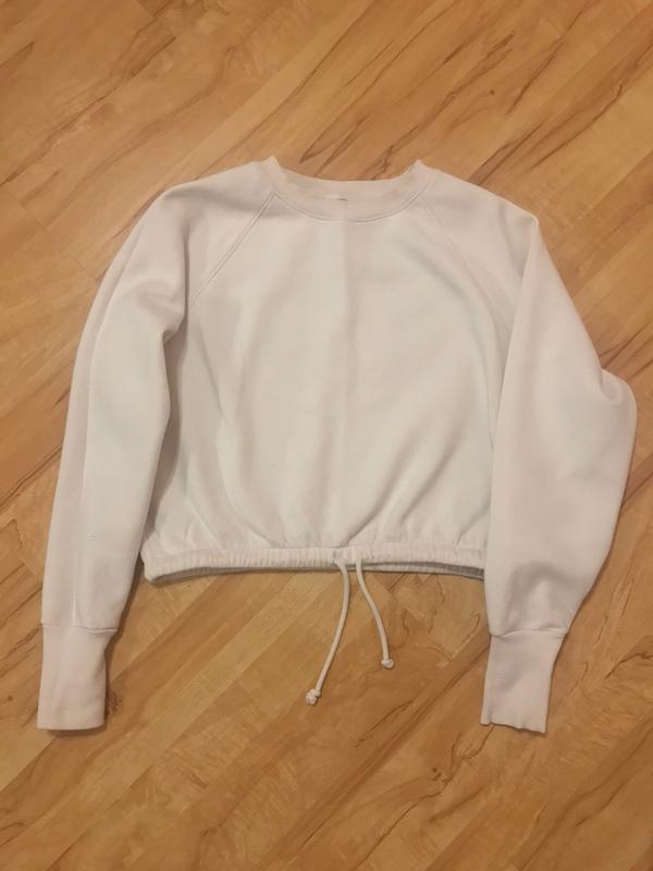 Свитшот женский короткий нежно бежевого цвета, бренд H&M, на размер S, теплый, без нюансов. Длина -50, ширина -62, рукав от горловины -75, можно подкачивать манжет