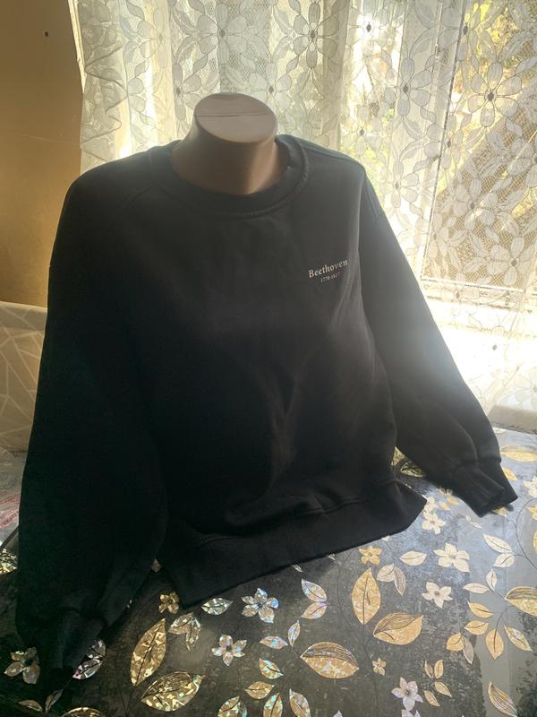 Дуже гарний, цікавої моделі світшот, стан нової речі, розмір вказано М, модель оверсайз, на L також підходить. Має дуже гарний та цікавий вигляд, по переду йде під манжет, а по заду вільною сорочкою 👍 Будь Ласка, дивіться фото, заміри та опис уважно, повернення немає! Передоплата 150гр., якщо замовлення після платою!!!