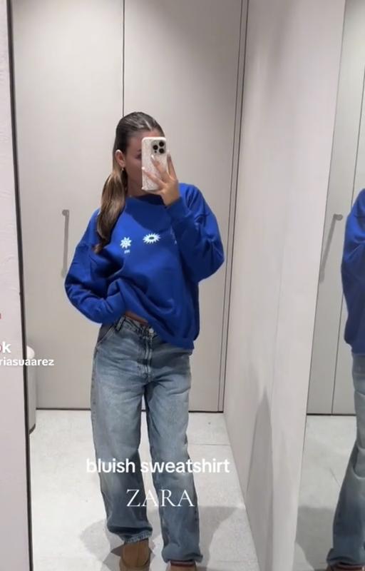 Синій світшот Zara, на флісі , на бірці 45$ На дівчині одягнено на розмір більше ✅S, довж 60, по грудях 64 , рукав від горл 64/70 (5) новий
