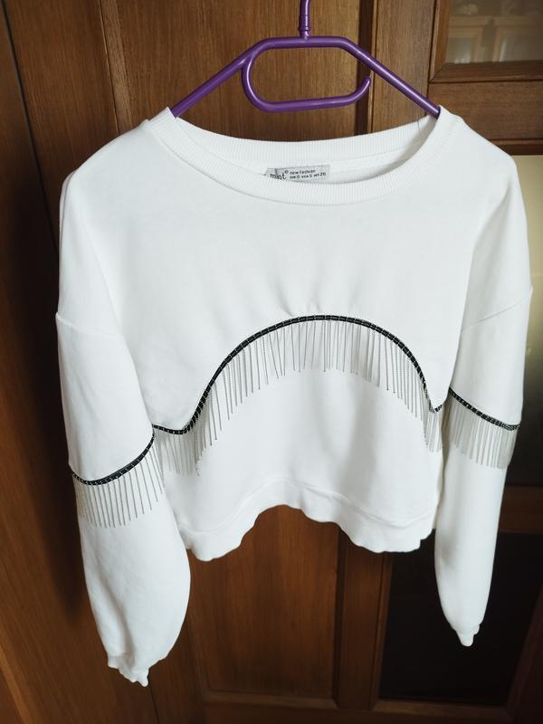 Стильная кофта свитшот с украшениями, размер указан S, но подойдет и на М, идет оверсайз. Материал очень качественный коттон двухнитка