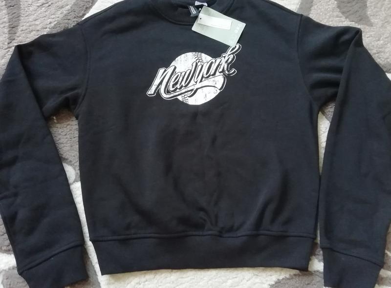Стильный новый свитшот, есть бумажная бирка. Замеры : длина 54см, ПОГ-45см, плечи 44см, рукав 58см. Состав-65% хлопок.