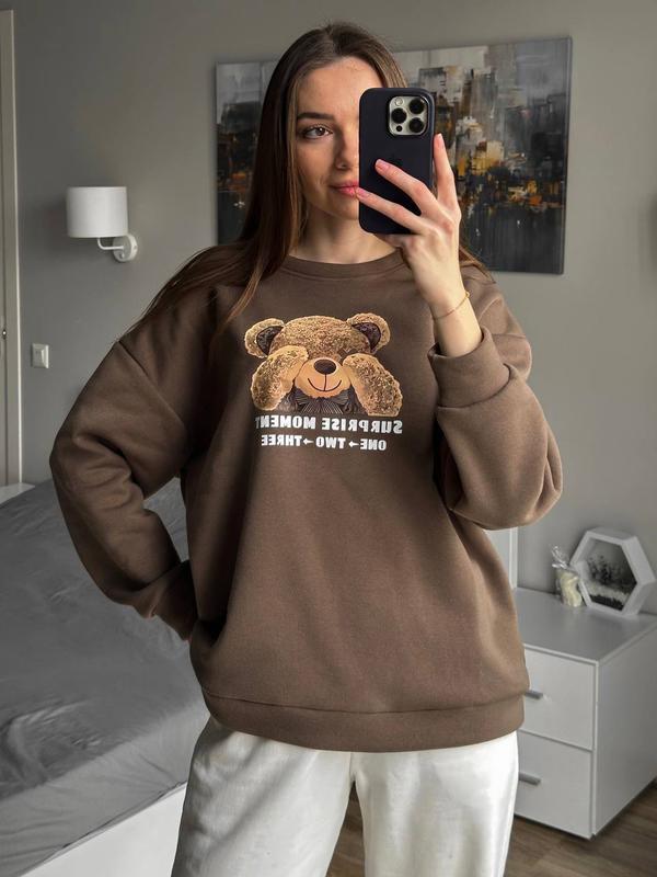 Свитшот 🤎 Мод: 1366-607 ▪️Размер: 42-48 ▪️Ткань: трехнитка с начесом ▪️Цвет: мокко, шоколад