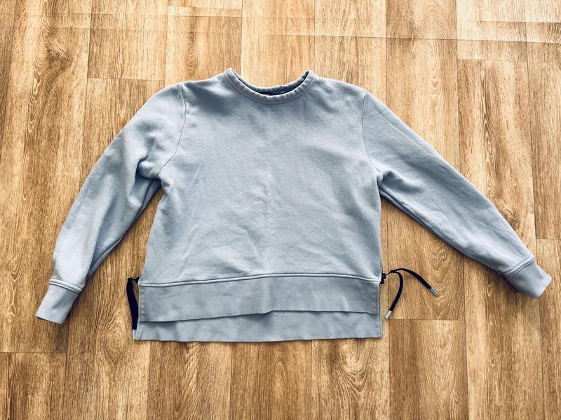 Світшот ніжно бузково блакитного кольору. Фото не передає точний колір. По боках стилізований блискавками.