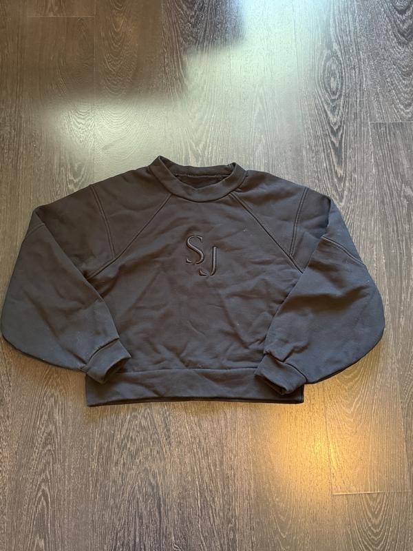 Стильний чорний свитшот з якісної дихаючої тканини (100% бавовна). Модель має класичний вільний крій, манжети на рукавах та внизу виробу. Спереду прикрашений об’ємною вишивкою з літерами SJ, що додає оригінальності. Ідеальний стан, без дефектів. Підійде як для щоденного використання, так і для створення стильних кежуал-образів. ▪️ Матеріал: 100% котон ▪️ Стан: ідеальний