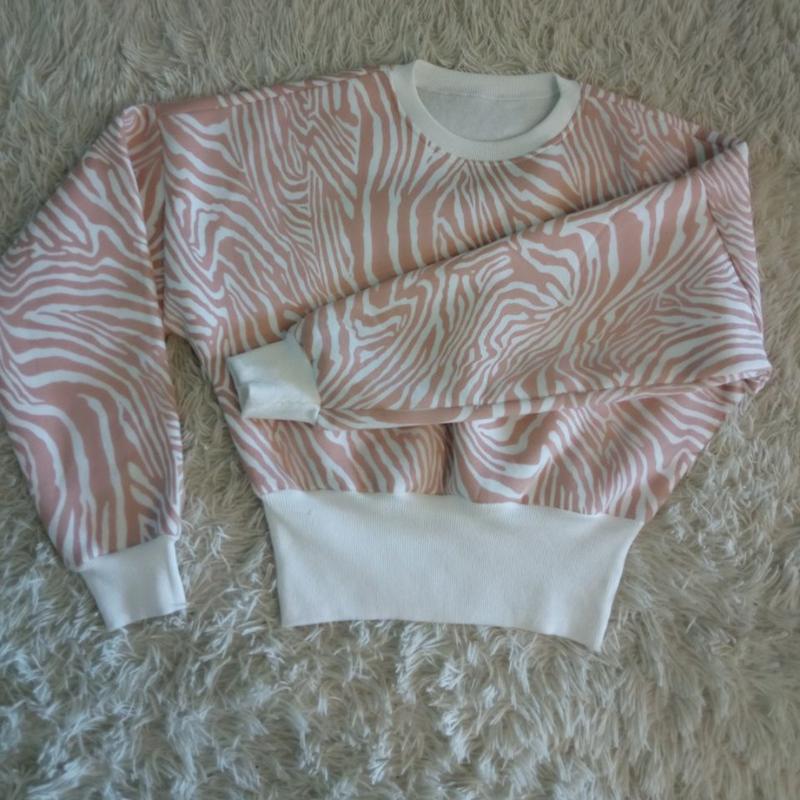 размер S*M крой кимано Опущенное плечо длина 24 длина от горловины по рукаву 80 см длина изделия 56см резинка по талии 31 максимально растягивается до 46 см низ рукава обработан манжетом ширина 8см максимально растягивается до 13 см качественная трех нить принт зебра