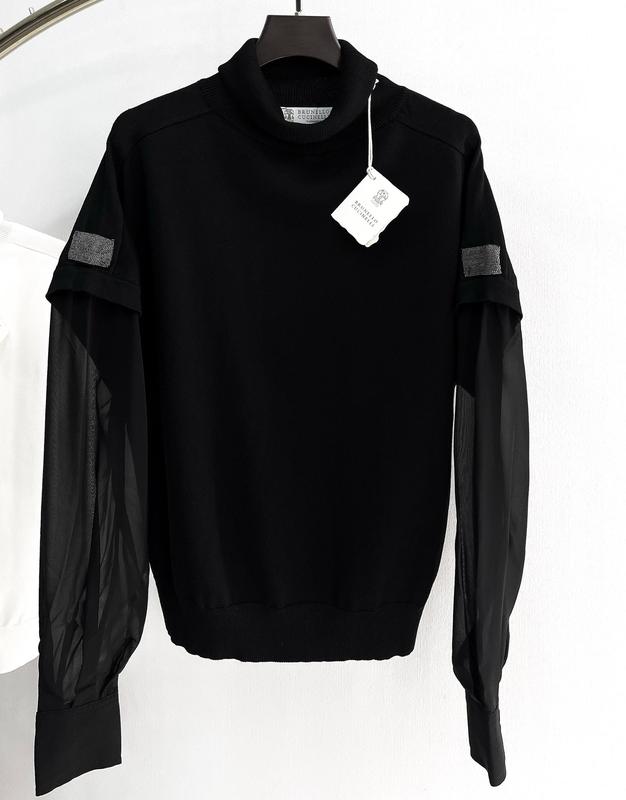 High Quality Комбинированная модель 🔝 Кашемир с шифоном • материал: cashmere, wool, chiffon ✨ • все фирменные бирки 🏷️ • фирменная цепь Мониль • ругав реглан В размерах: S M L XL 4600 грн