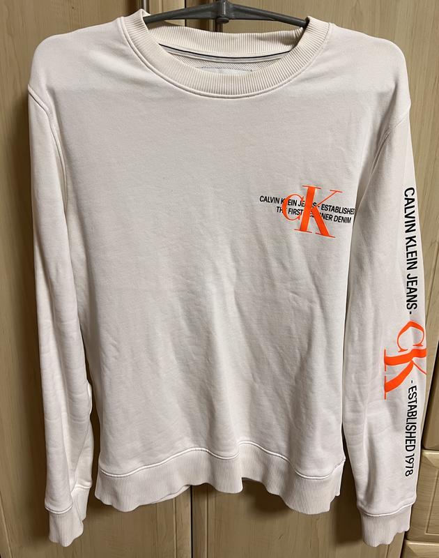 Продам білий світшот Calvin Klein з прикольним написом на рукаві. Розмір S (підійде на М) Пишіть або телефонуйте