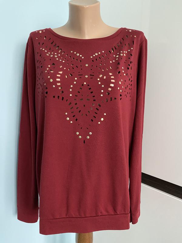 Гарний, оригінальний світшот від відомого бренду, оригінал. Передня полочка оздоблена паєтками і вибит визерунок ришильє. Колір бордо