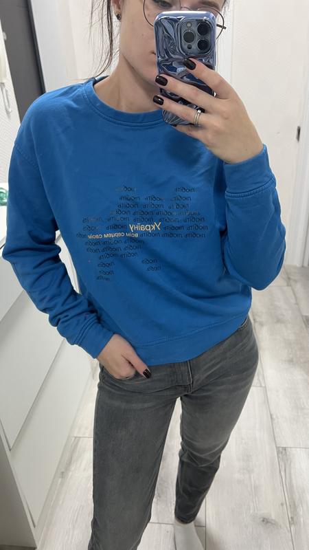 худі/світшот one by one «любіть Україну» Розмір на етикетці XS-S Мої параметри 87 груди, 70 талія Зріст 166 Довжина рукава від плеча 58 см Довжина 54 см Напів обʼєм грудей 53 см