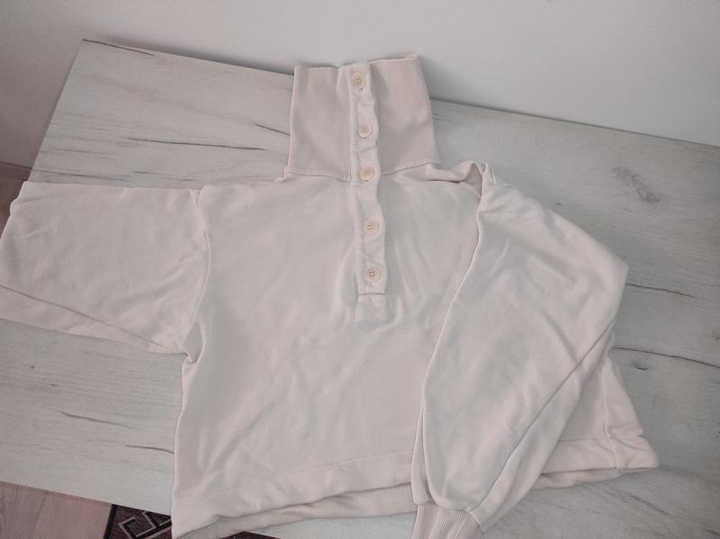 Кофта женская Cos, коттон, свет бежевого цвета, укороченная, длина по спинке 47 см, полуобъем груди 57 смс, длина рукава 50 см, тип оверсайз.