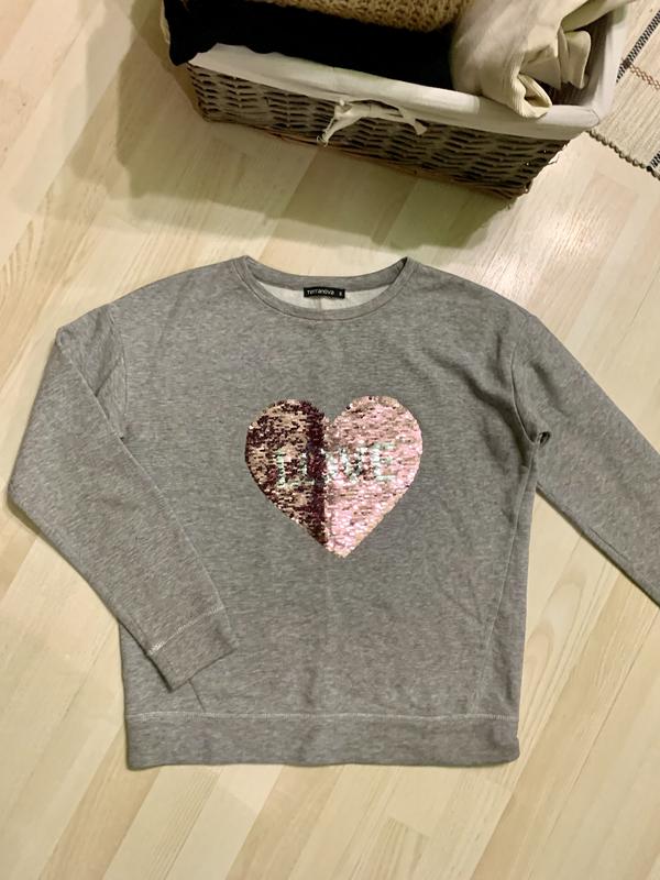 Дуже класний світшот із сердечком з пайєток Змінює колір та назву (true-love) На флісі Розмір s, можна м Стан ідеал, без дефектів Заміри Груди 53 Низ 47 у спокійному стані Плече 17 Рукав 51 Довжина 58 📌можливий самовивіз у м. Харків 📌налржка з передоплатою 200 (нова пошта)