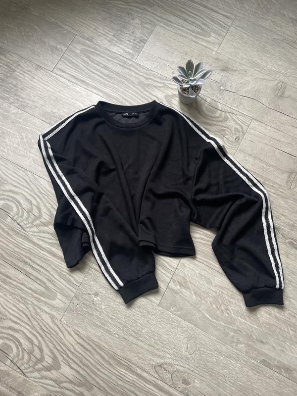 Кофта вкорочена, джемпер,світшот sinsay чорного кольору з полосками на рукавах