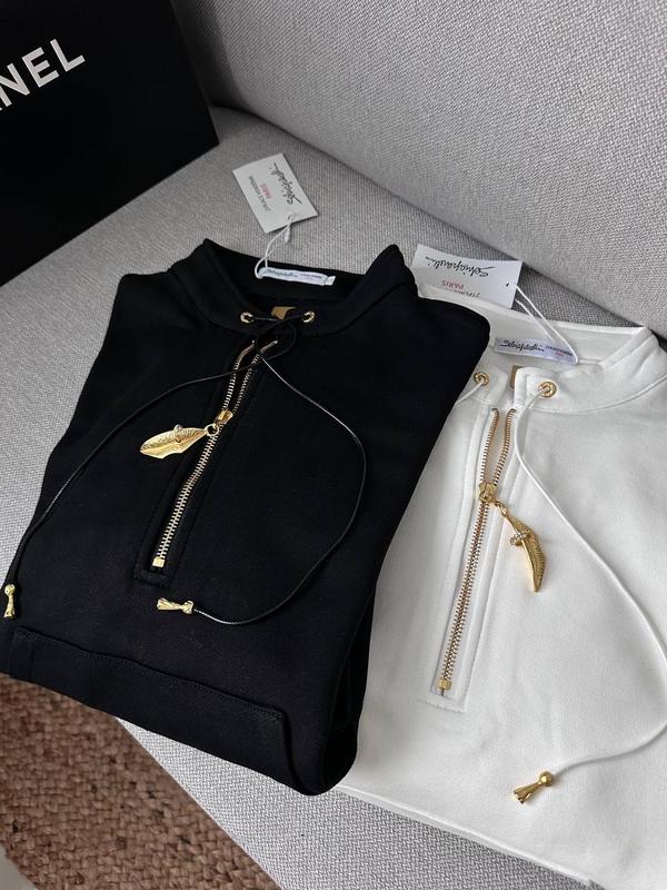 Світшот із золотистими акцентами Елегантний і водночас лаконічний світшот із благородним блиском золота. Модель виконана з преміум-бавовни із м’якою текстурою, що дарує комфорт у щоденному носінні. Золотиста блискавка, декоративні куліски та підвіска у формі листка додають виробу витонченого характеру. Доступний у двох класичних кольорах: ▫️ білий — для ніжного, чистого образу ▫️ чорний — для виразного, контрастного луку