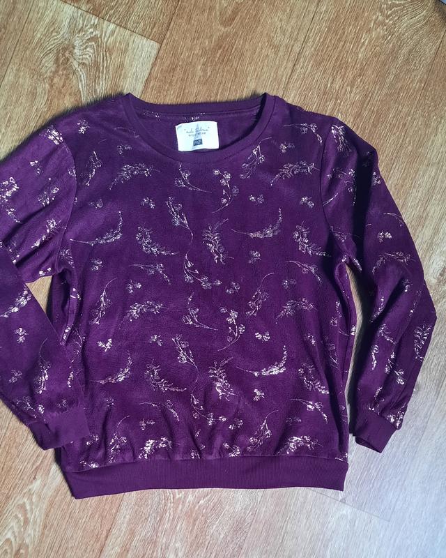 Свитшот флисовый, очень красивый блестящий рисунок, мягкий и теплый, темно фиолетовый цвет, полуобхват груди 54 см, длина 59 см